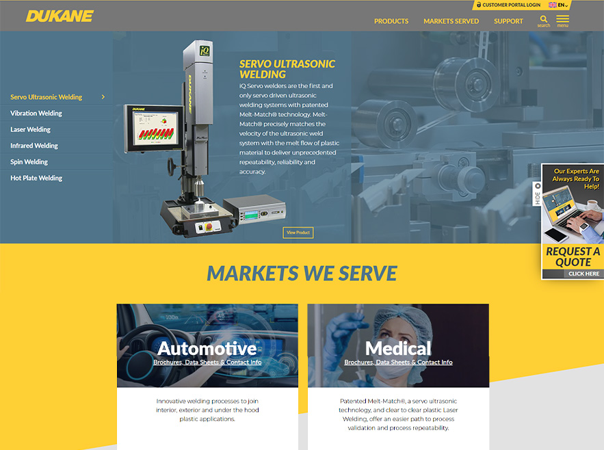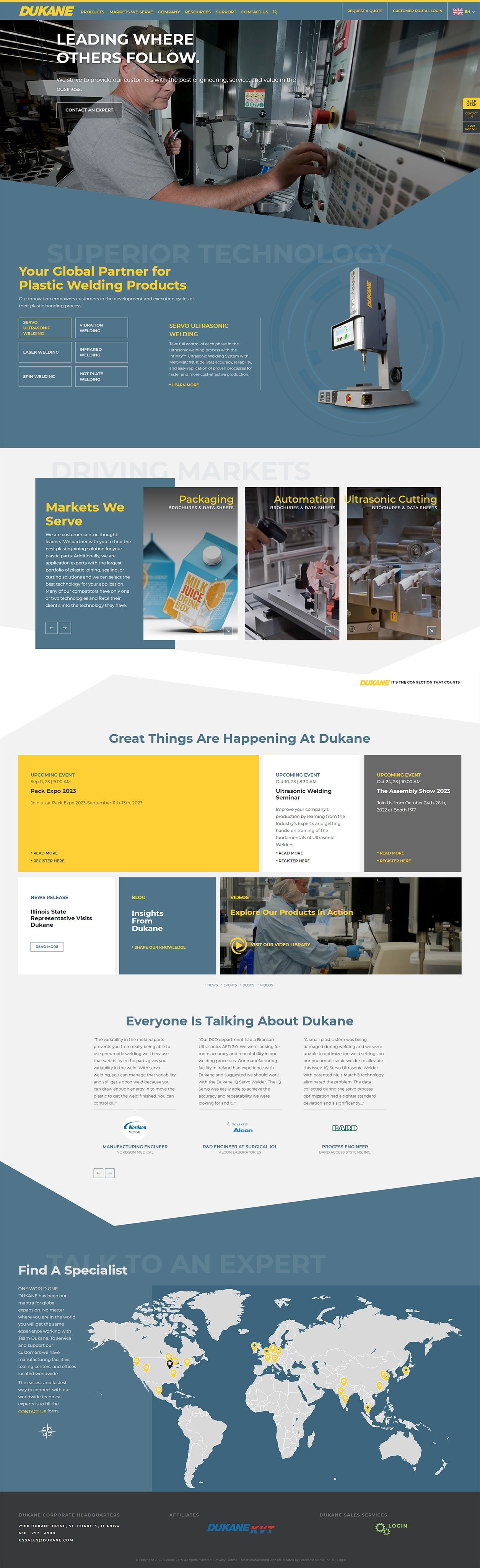 The project focused on creating Italian and German versions of Dukane’s medical page, integrating client-provided translations into these language-specific portals. We carefully implemented the translated content, verified proper formatting, and conducted thorough quality assurance to ensure a seamless user experience across different versions. This process not only improved Dukane's international web presence, but also established a framework for future multilingual expansions.