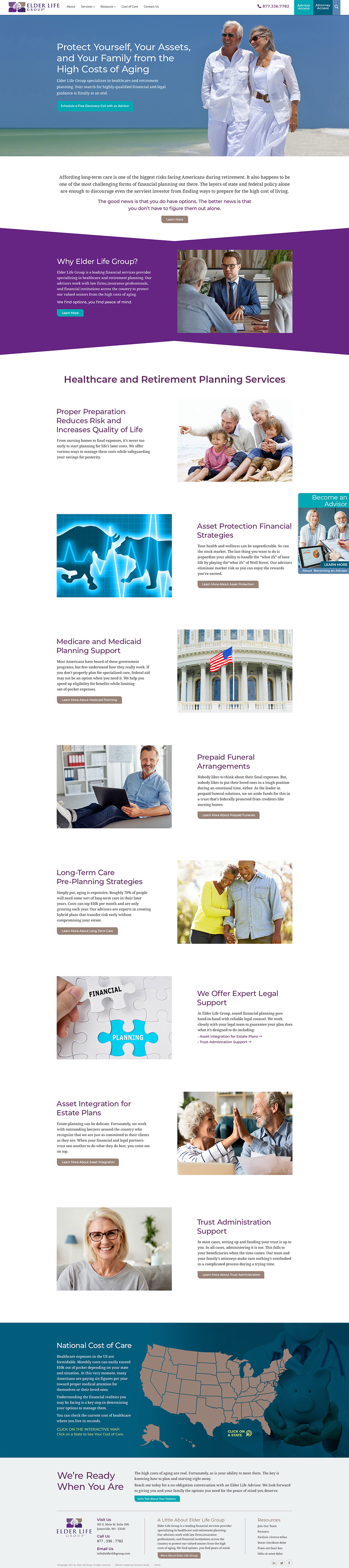 To further improve navigation, we implemented a custom Cost of Care feature that provides simple calculations for long-term care expenses. Users can determine projected costs for in-home care, community/assisted living, and nursing home facilities for their home state, allowing them to plan ahead.