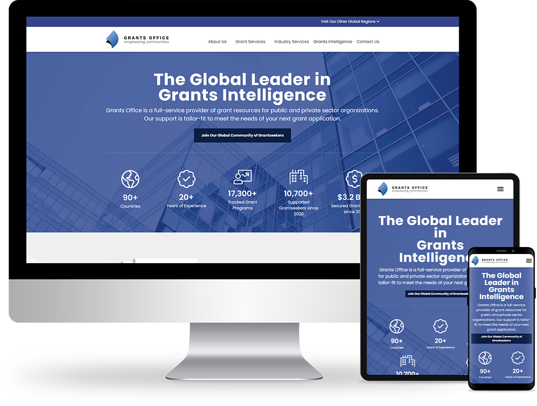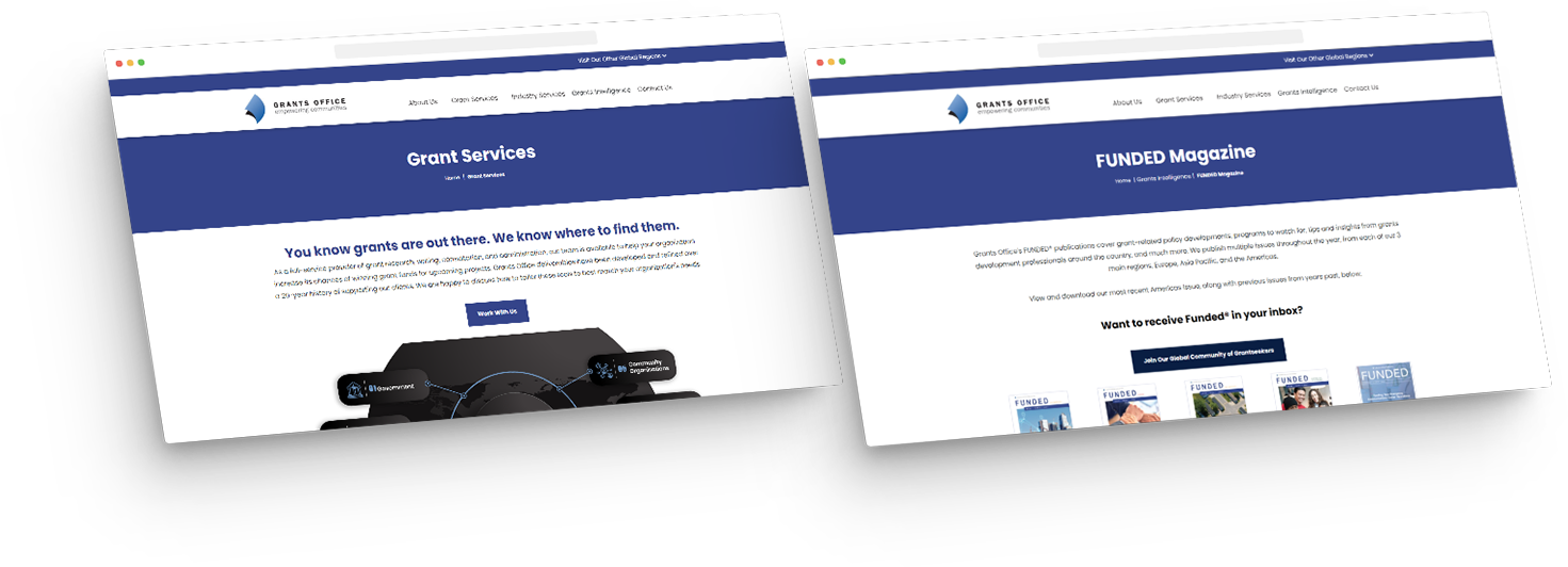 With the “under the hood” work complete, our next task was a complete redesign of the Grants Office website. This extensive overhaul resulted in a whole new look and feel for the site. The old red color scheme didn’t match the logo, so we switched to a shade of blue to complement and enhance their branding. Top-level navigation was added to the homepage, making it easier for visitors to find what they are looking for quickly. An improved, user-friendly layout includes upfront information about the services they provide, graphics showcasing their achievements, and links to resources such as global funding news, webcasts, and a quarterly publication. The addition of clear CTAs encourages users to take action.
