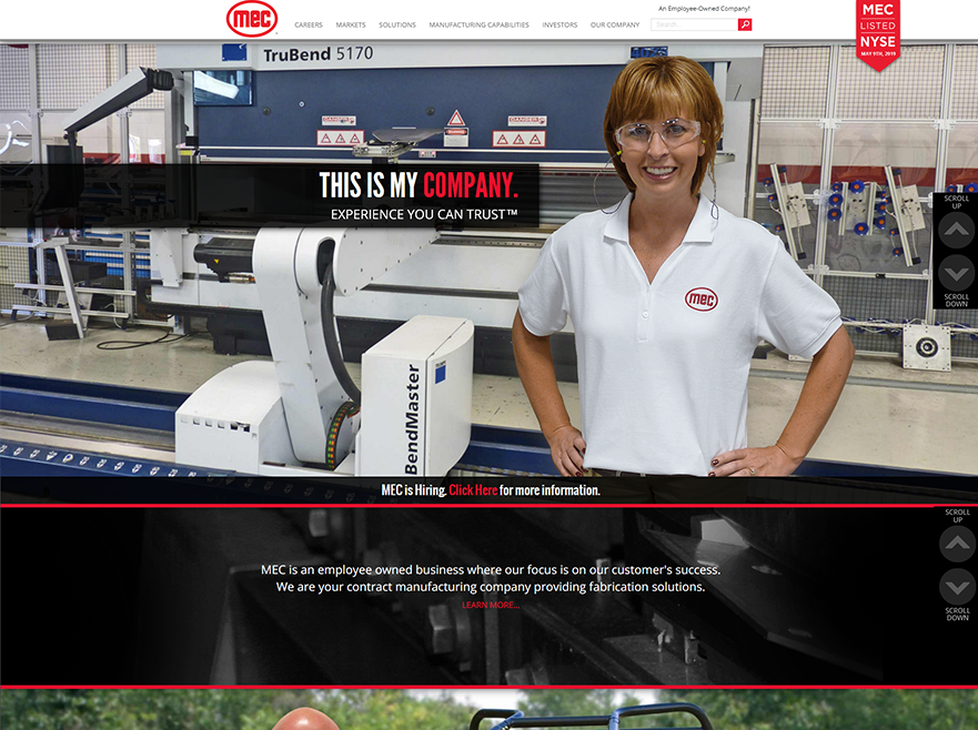 When MEC approached us to redesign their new contract manufacturing website, a couple of main objectives for the redesign was to showcase MEC’s wide range of capabilities and promote their employee-owned company culture. MEC also expressed that they wanted to stand out from their competitors’ websites. To help with this objective, we added Parallax effects to their home page to bring their services to life, like the animation that shows one of their products being assembled at the end of the homepage.
