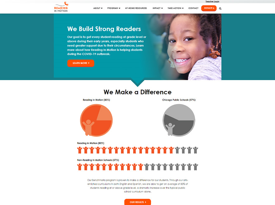 To add ecommerce functionality, we applied the design to a nopCommerce framework. An “Invest in Literacy” tab across the homepage header showcases products that are available for purchase, and a shopping cart ensures easy, fast, and secure checkout.