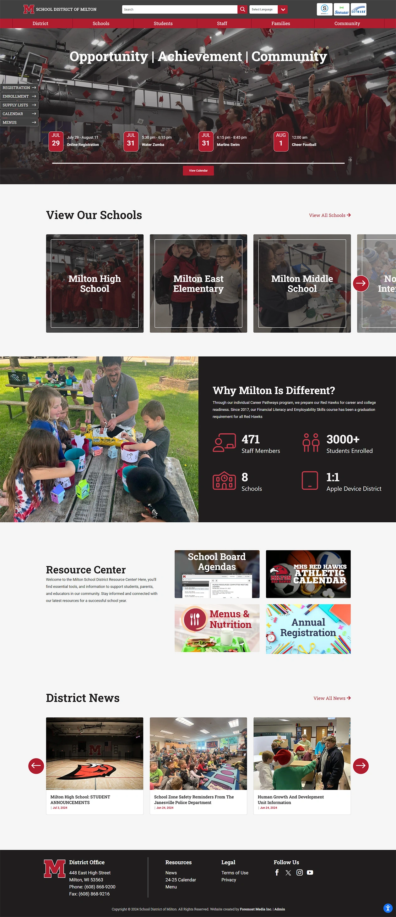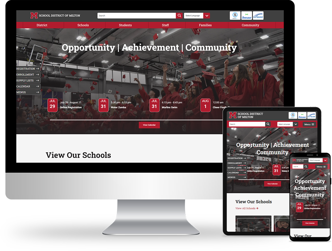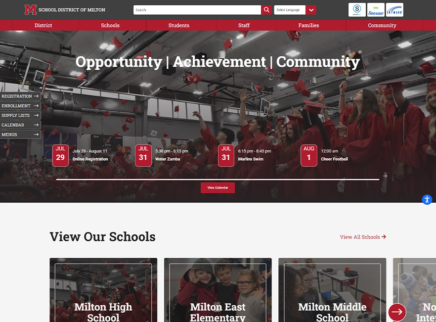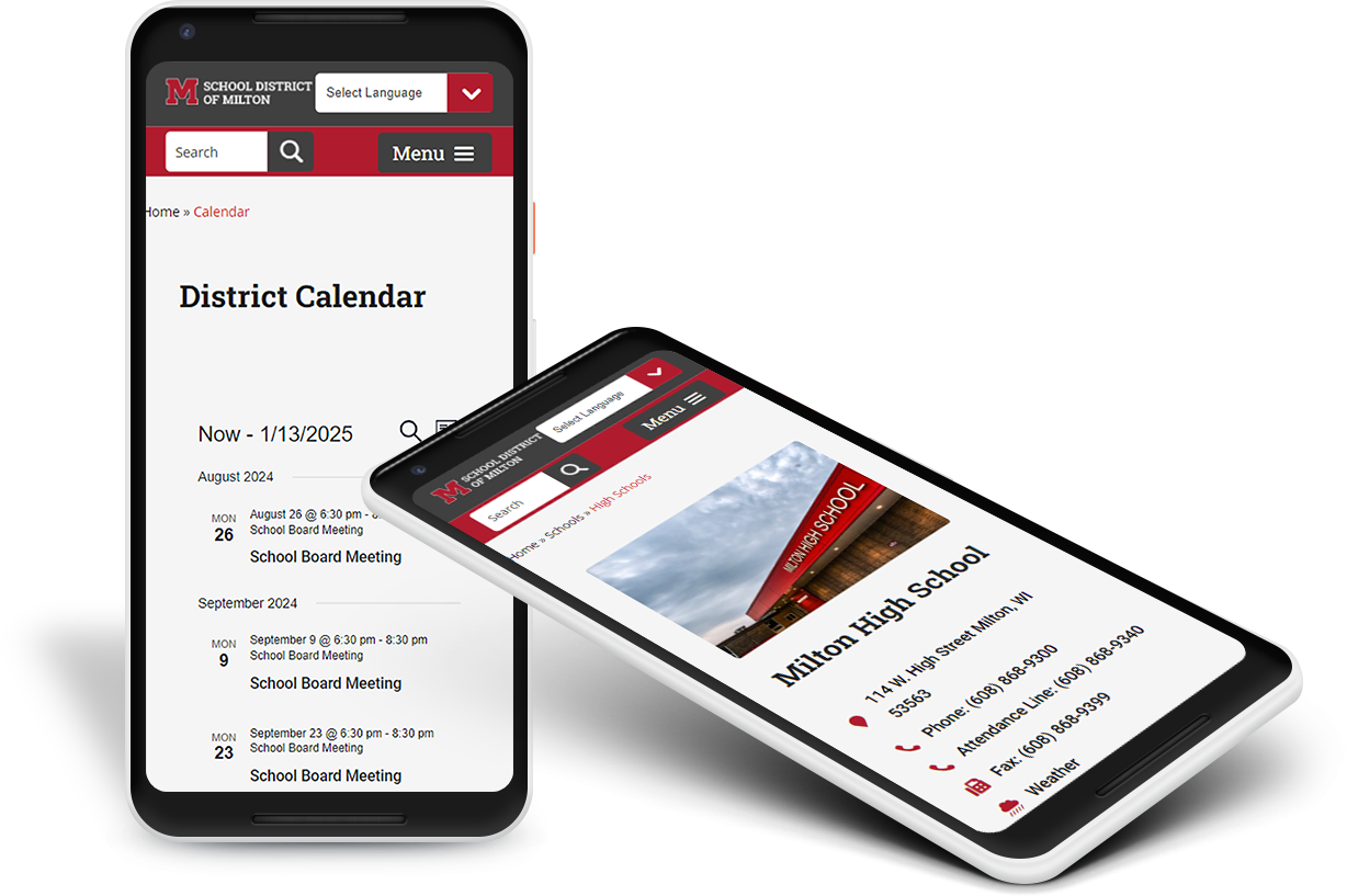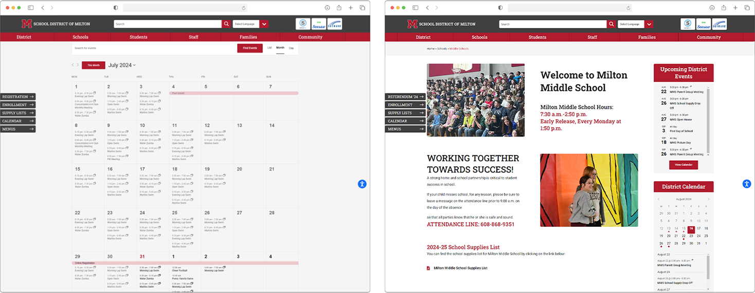 One of the biggest needs of the district was better calendar functionality, making it easier for the students and parents to find events. Using the plugin Events Manager on WordPress, we were able to implement a calendar with different categories of events, the ability to subscribe to calendars, and admin functions for simple updating of events. Additionally, the district needed an online staff directory, which we were able to create through a Directory plugin, allowing for ease of use in adding staff members, headshots, and applying schools and positions to profiles.