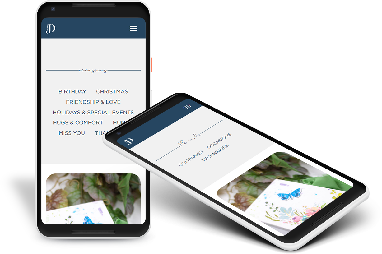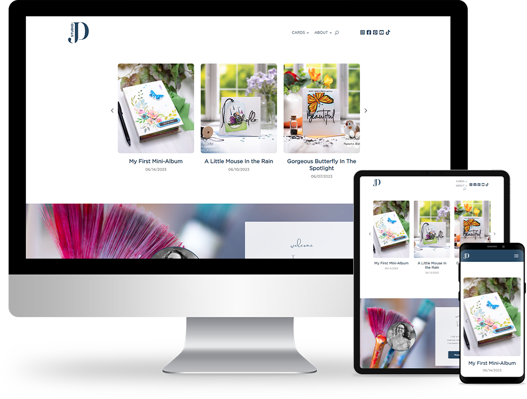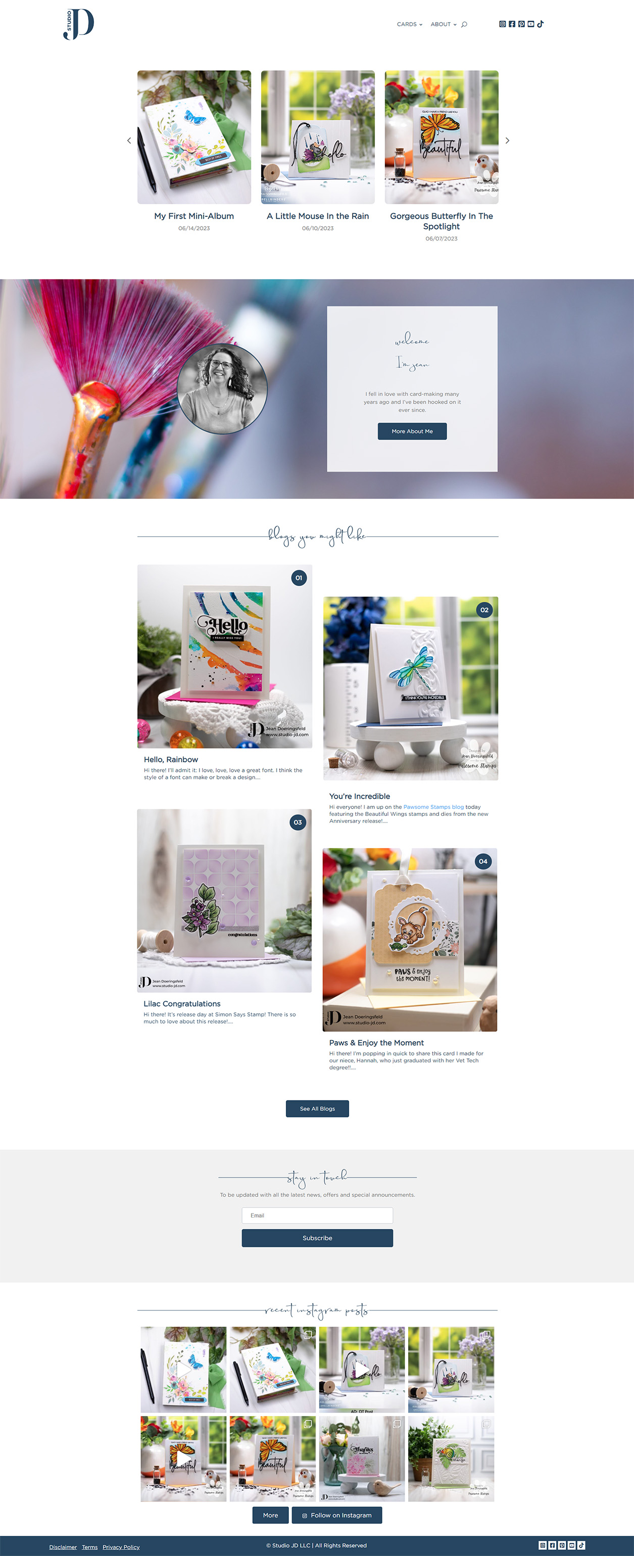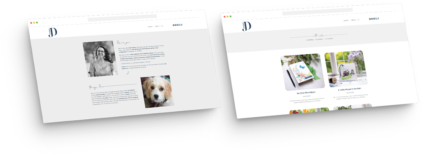 We designed a new logo that was modern and sophisticated — a perfect complement to the client’s artistic flair. The WordPress website we built is clean and minimal; blog posts feature high-quality images showcasing the client’s artistic ability. Blog posts are laid out post date, with the newest at the top of the page. The top navigation bar features a dropdown menu with links to different card categories, an About page, a search bar, and social media links. We added an email subscription box and an Instagram gallery at the bottom.