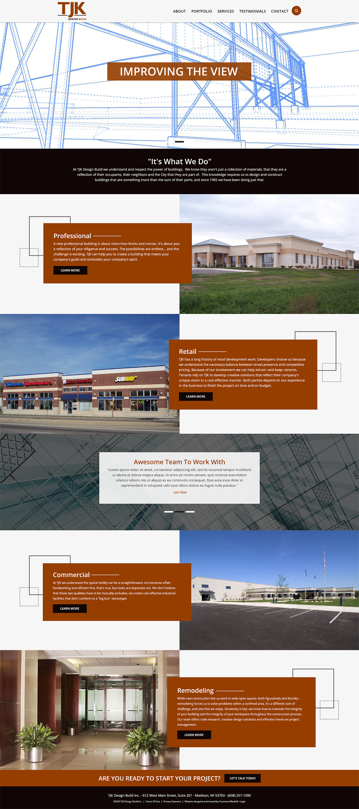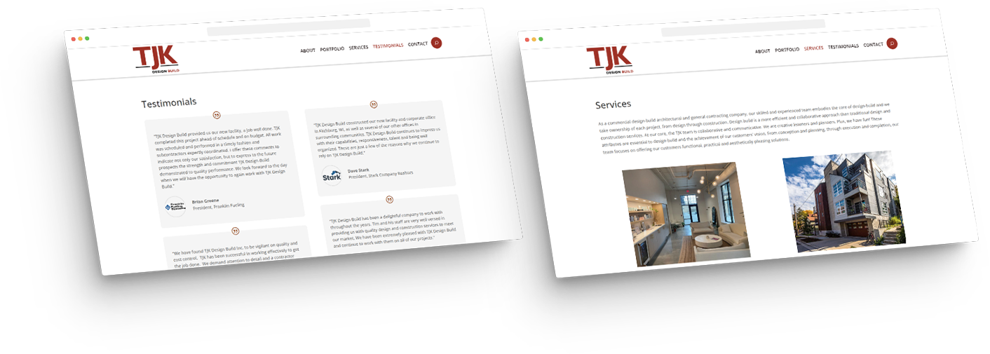 Built on the WordPress platform, we used architectural imagery and geometric elements to incorporate their industry theme into the design. Content was expanded and re-organized in a more thoughtful way that allows visitors to better understand the client’s background and their capabilities. We created a portfolio with high-quality images to showcase their work and added testimonials to demonstrate their value to potential new clients.