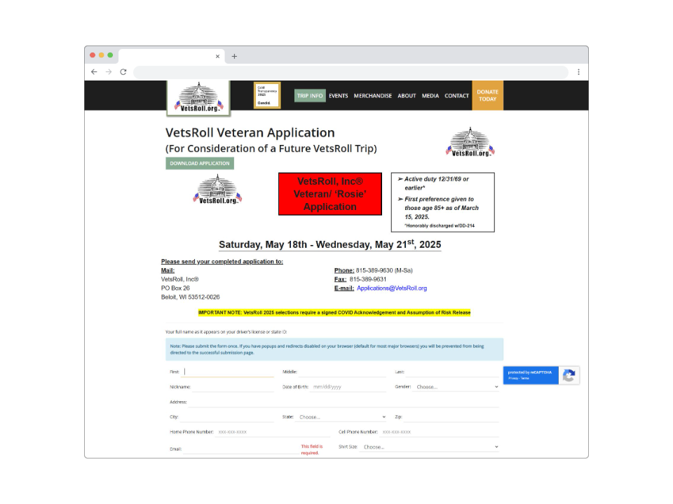 Most recently, we added the ability for users to save their progress and return to the form at a later date, creating a more convenient experience. We also made sure that the digital forms mirrored the look and feel of the printed handouts for consistency across both formats. Our team cleaned up submission emails by streamlining field data to make it easier for the VetsRoll team to manage the incoming information.