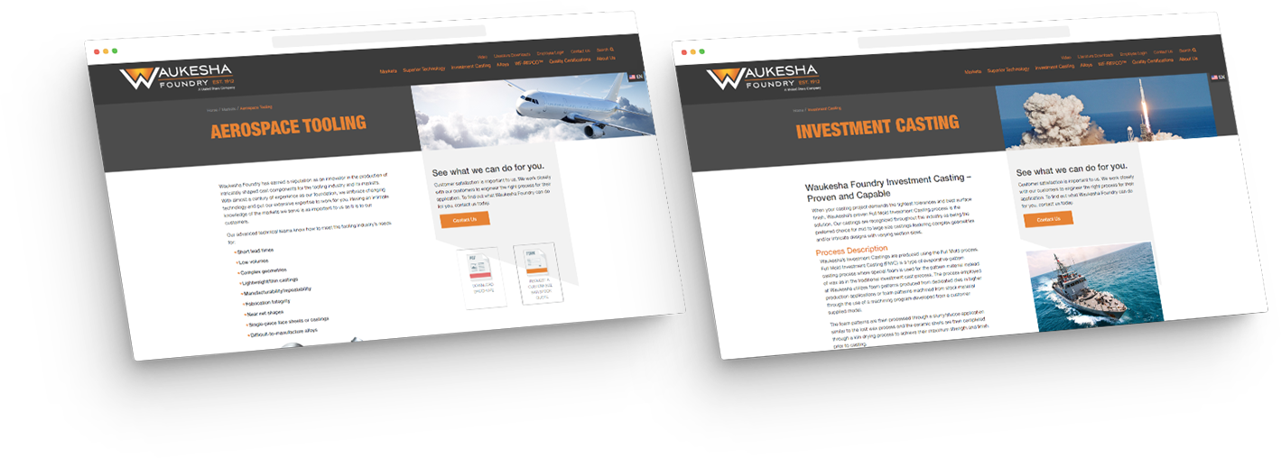 By relying less on capabilities and shifting the focus of the homepage content toward sectors served, Waukesha Foundry is better positioned to attract customers based on their search patterns. The new site is much more dynamic and better reflects their cutting-edge products and technology.