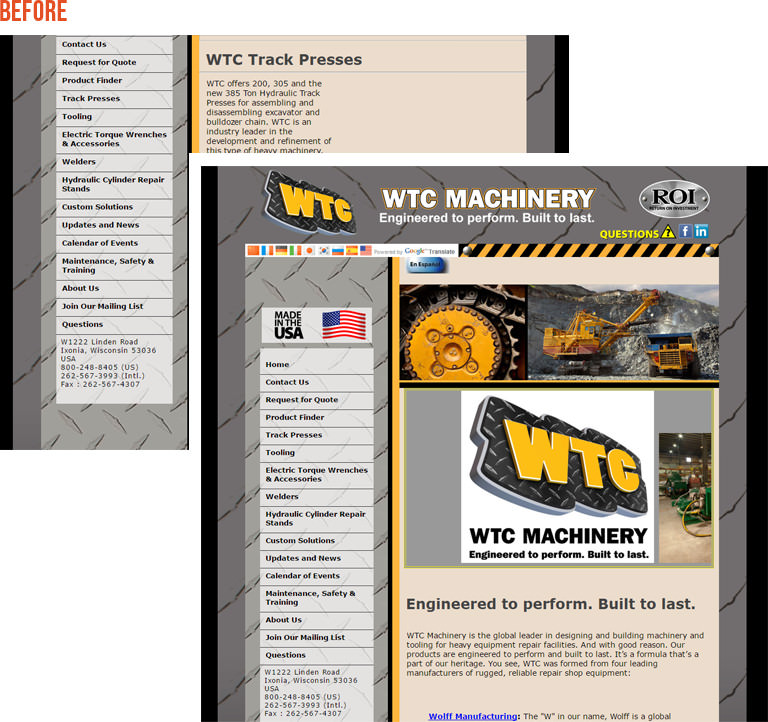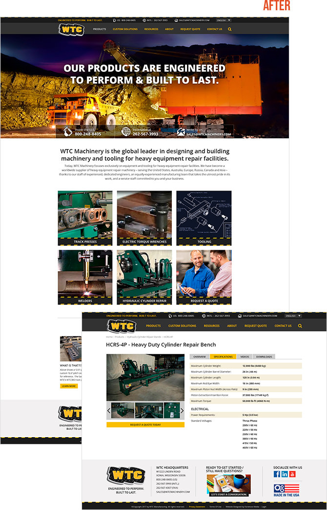 With a solid brand reputation built on over 50 years of experience, WTC Machinery’s website was no longer a proper representation. In addition to an updated look, they wanted their design to focus on improving the user experience to help visitors find the information they were after quickly.